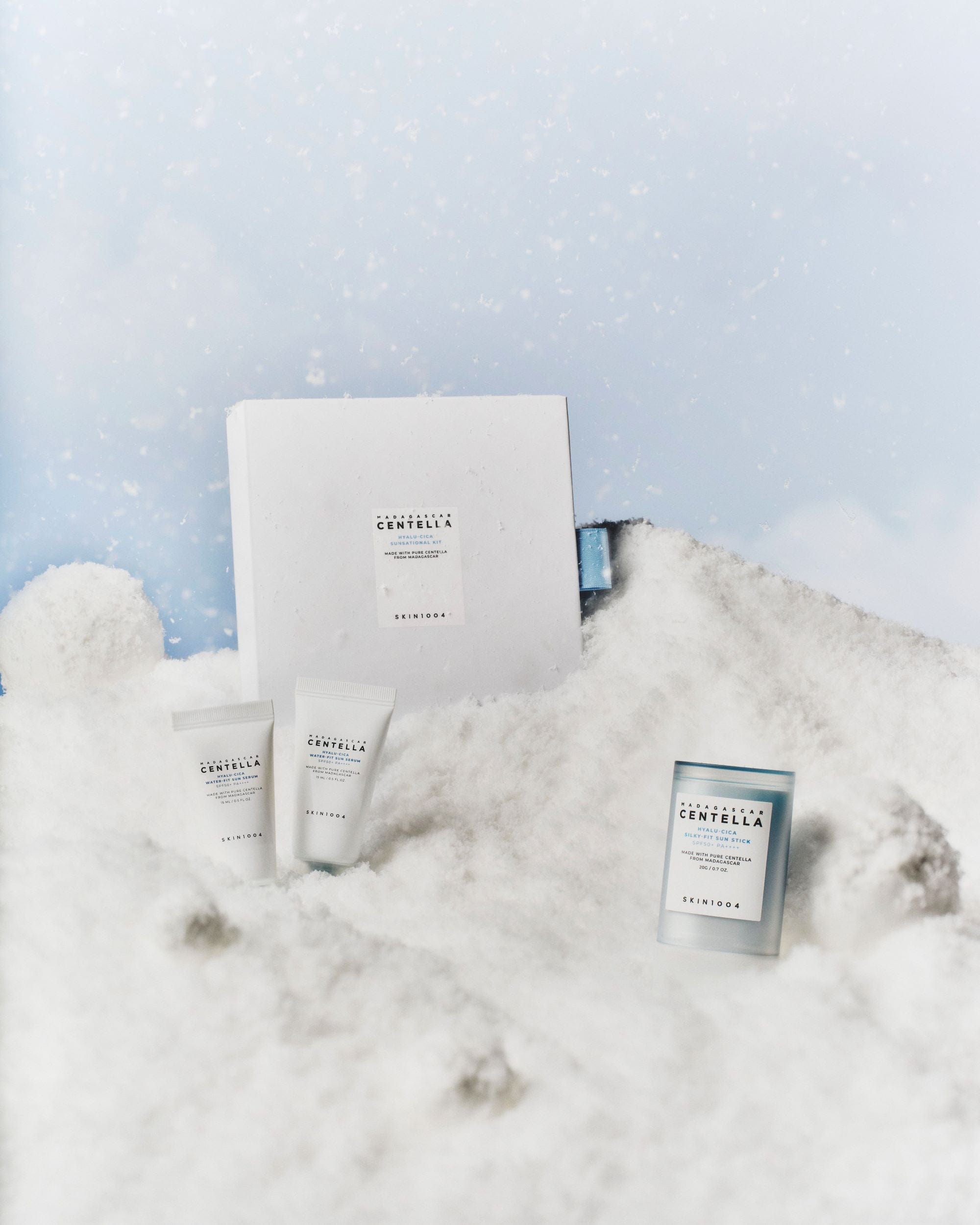 An all-day sunscreen kit with 2 portable mini-sized Hyalu-cica Water-fit Sun serums and a Hyalu-cica Silky-fit Sun stick.